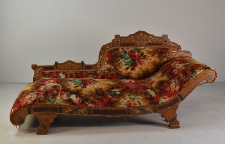 Fabric is worn and stringy on edge areas. Fabric is vintage and in acceptable condition for its age. Missing rear fabric covering.